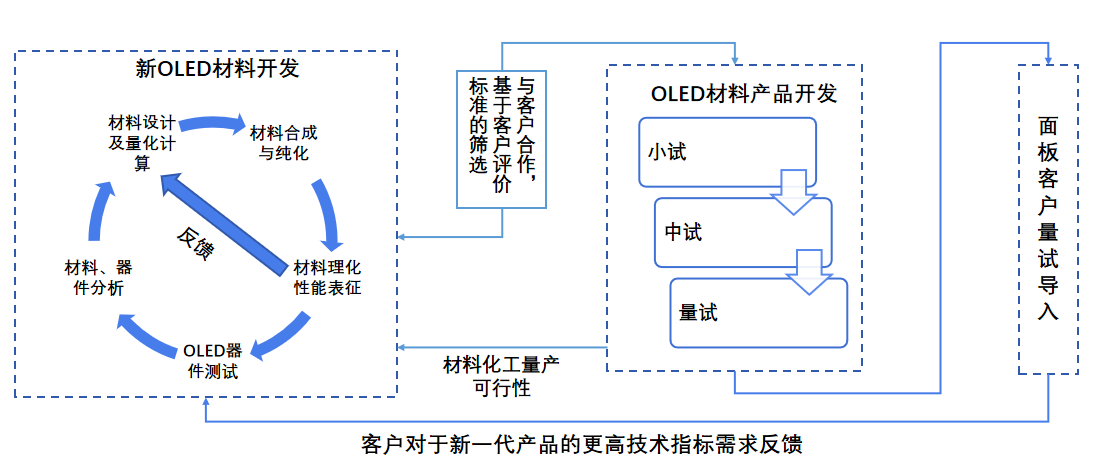 第一,清晰的知识产权,开发具有独立自主知识产权的OLED材料,便于“产品自由实施”。